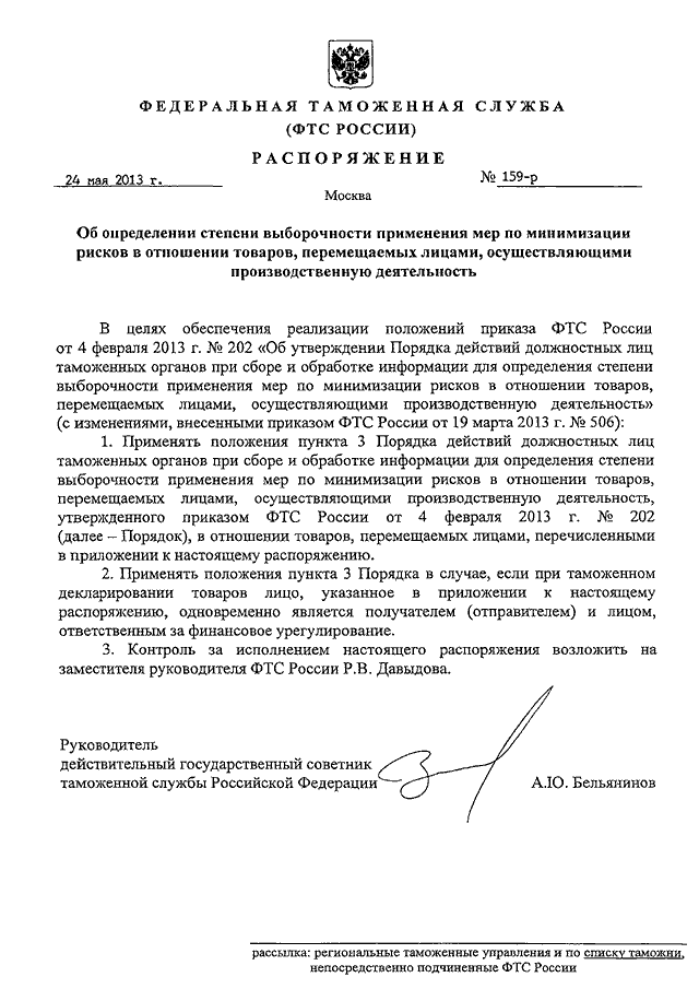 РАСПОРЯЖЕНИЕ ФТС РФ от 24.05.2013 N 159-р