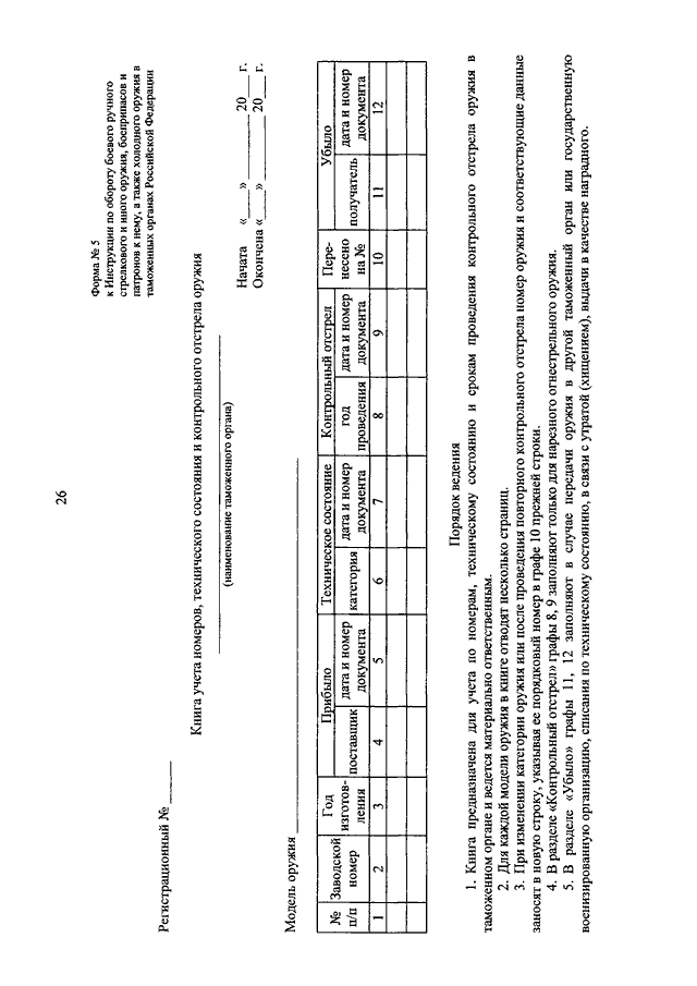 "ОБ УТВЕРЖДЕНИИ ИНСТРУКЦИИ ПО ОБОРОТУ БОЕВОГО РУЧНОГО СТРЕЛКОВОГО И ИНОГО ОРУЖИЯ, БОЕПРИПАСОВ И ПАТРОНОВ К НЕМУ, А ТАКЖЕ ХОЛОДНОГО ОРУЖИЯ В ТАМОЖЕННЫХ ОРГАНАХ РОССИЙСКОЙ ФЕДЕРАЦИИ"
