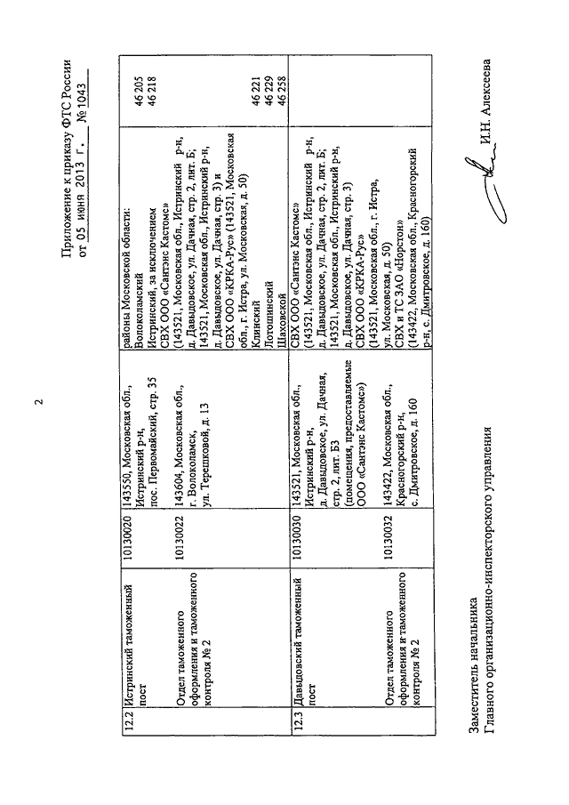 ПРИКАЗ ФТС РФ от 05.06.2013 N 1043
