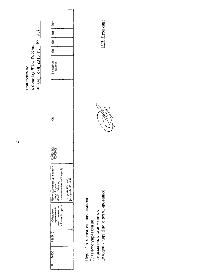 ПРИКАЗ ФТС РФ от 04.06.2013 N 1037