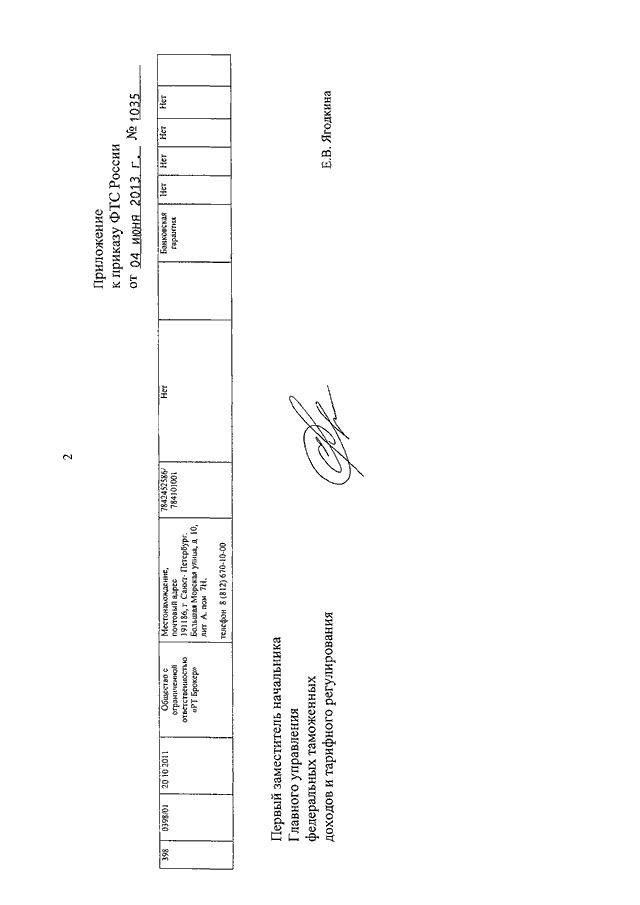 ПРИКАЗ ФТС РФ от 04.06.2013 N 1035