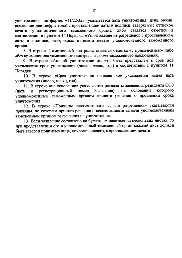 "ОБ УТВЕРЖДЕНИИ ПОРЯДКА УНИЧТОЖЕНИЯ НА ТЕРРИТОРИЯХ ОСОБЫХ ЭКОНОМИЧЕСКИХ ЗОН ИЛИ ВЫВОЗА С ТЕРРИТОРИЙ ОСОБЫХ ЭКОНОМИЧЕСКИХ ЗОН В ЦЕЛЯХ УНИЧТОЖЕНИЯ ТОВАРОВ, ПОМЕЩЕННЫХ ПОД ТАМОЖЕННУЮ ПРОЦЕДУРУ СВОБОДНОЙ ТАМОЖЕННОЙ ЗОНЫ, И (ИЛИ) УПАКОВКИ И УПАКОВОЧНЫХ МАТЕРИАЛОВ"