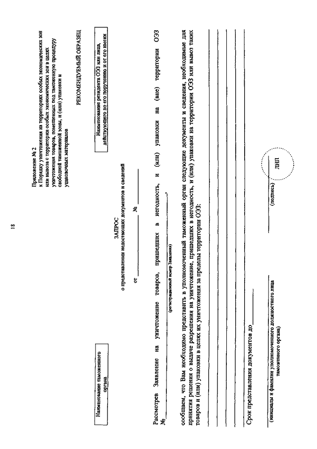 "ОБ УТВЕРЖДЕНИИ ПОРЯДКА УНИЧТОЖЕНИЯ НА ТЕРРИТОРИЯХ ОСОБЫХ ЭКОНОМИЧЕСКИХ ЗОН ИЛИ ВЫВОЗА С ТЕРРИТОРИЙ ОСОБЫХ ЭКОНОМИЧЕСКИХ ЗОН В ЦЕЛЯХ УНИЧТОЖЕНИЯ ТОВАРОВ, ПОМЕЩЕННЫХ ПОД ТАМОЖЕННУЮ ПРОЦЕДУРУ СВОБОДНОЙ ТАМОЖЕННОЙ ЗОНЫ, И (ИЛИ) УПАКОВКИ И УПАКОВОЧНЫХ МАТЕРИАЛОВ"