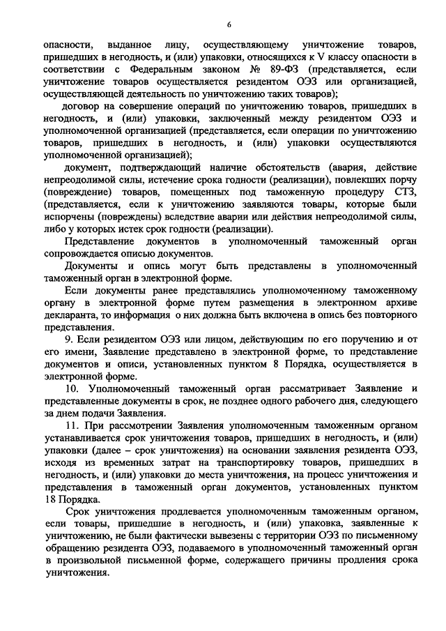 "ОБ УТВЕРЖДЕНИИ ПОРЯДКА УНИЧТОЖЕНИЯ НА ТЕРРИТОРИЯХ ОСОБЫХ ЭКОНОМИЧЕСКИХ ЗОН ИЛИ ВЫВОЗА С ТЕРРИТОРИЙ ОСОБЫХ ЭКОНОМИЧЕСКИХ ЗОН В ЦЕЛЯХ УНИЧТОЖЕНИЯ ТОВАРОВ, ПОМЕЩЕННЫХ ПОД ТАМОЖЕННУЮ ПРОЦЕДУРУ СВОБОДНОЙ ТАМОЖЕННОЙ ЗОНЫ, И (ИЛИ) УПАКОВКИ И УПАКОВОЧНЫХ МАТЕРИАЛОВ"