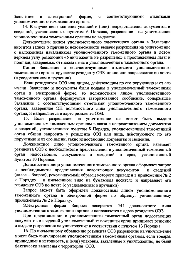 "ОБ УТВЕРЖДЕНИИ ПОРЯДКА УНИЧТОЖЕНИЯ НА ТЕРРИТОРИЯХ ОСОБЫХ ЭКОНОМИЧЕСКИХ ЗОН ИЛИ ВЫВОЗА С ТЕРРИТОРИЙ ОСОБЫХ ЭКОНОМИЧЕСКИХ ЗОН В ЦЕЛЯХ УНИЧТОЖЕНИЯ ТОВАРОВ, ПОМЕЩЕННЫХ ПОД ТАМОЖЕННУЮ ПРОЦЕДУРУ СВОБОДНОЙ ТАМОЖЕННОЙ ЗОНЫ, И (ИЛИ) УПАКОВКИ И УПАКОВОЧНЫХ МАТЕРИАЛОВ"