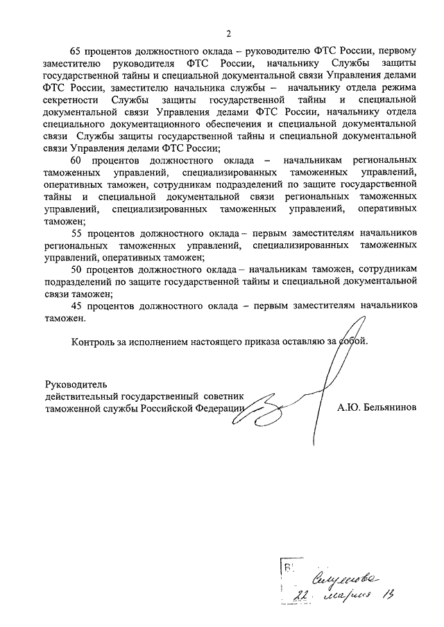 "О ЕЖЕМЕСЯЧНОЙ НАДБАВКЕ К ДОЛЖНОСТНОМУ ОКЛАДУ ЗА РАБОТУ СО СВЕДЕНИЯМИ, СОСТАВЛЯЮЩИМИ ГОСУДАРСТВЕННУЮ ТАЙНУ, СОТРУДНИКАМ ТАМОЖЕННЫХ ОРГАНОВ РОССИЙСКОЙ ФЕДЕРАЦИИ, ДОПУЩЕННЫМ К ГОСУДАРСТВЕННОЙ ТАЙНЕ НА ПОСТОЯННОЙ ОСНОВЕ"
