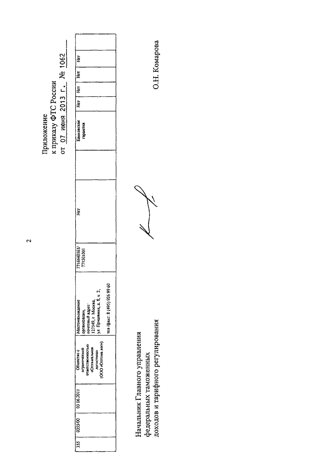 ПРИКАЗ ФТС РФ от 07.06.2013 N 1062