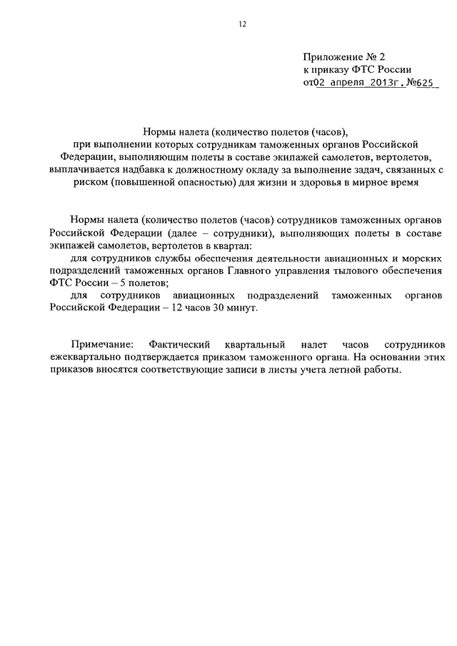 ПРИКАЗ ФТС РФ от 02.04.2013 N 625