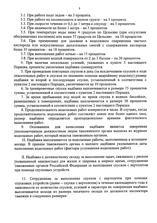 "О НАДБАВКЕ К ДОЛЖНОСТНОМУ ОКЛАДУ СОТРУДНИКАМ ТАМОЖЕННЫХ ОРГАНОВ РОССИЙСКОЙ ФЕДЕРАЦИИ ЗА ВЫПОЛНЕНИЕ ЗАДАЧ, СВЯЗАННЫХ С РИСКОМ (ПОВЫШЕННОЙ ОПАСНОСТЬЮ) ДЛЯ ЖИЗНИ И ЗДОРОВЬЯ В МИРНОЕ ВРЕМЯ"