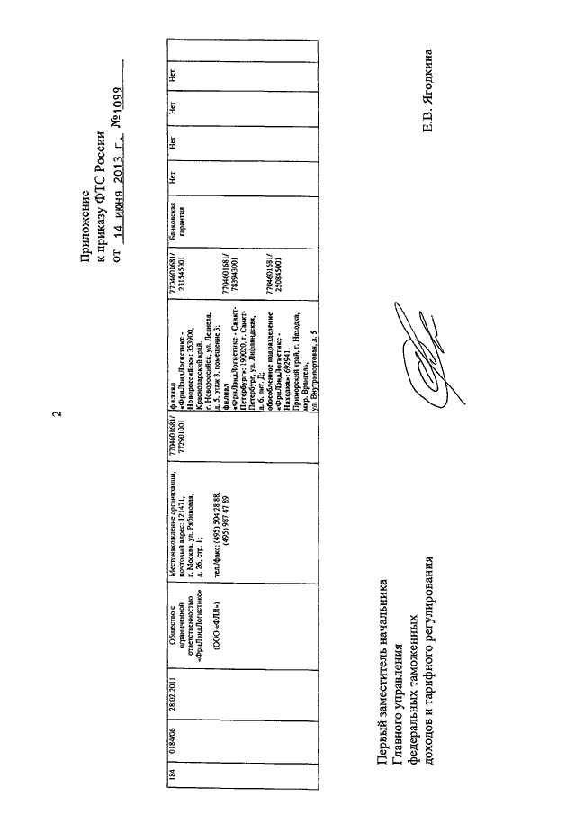 ПРИКАЗ ФТС РФ от 14.06.2013 N 1099