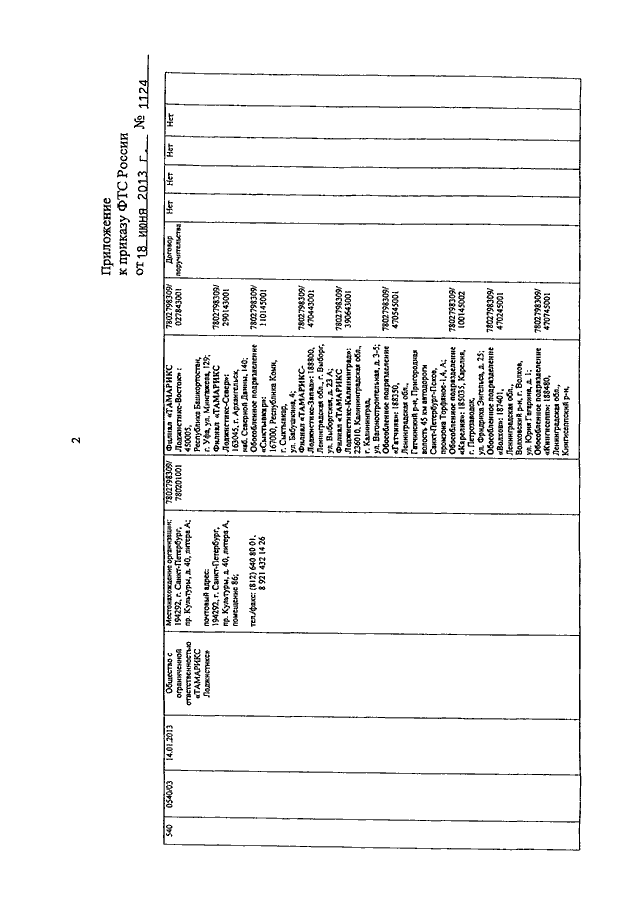 ПРИКАЗ ФТС РФ от 18.06.2013 N 1124
