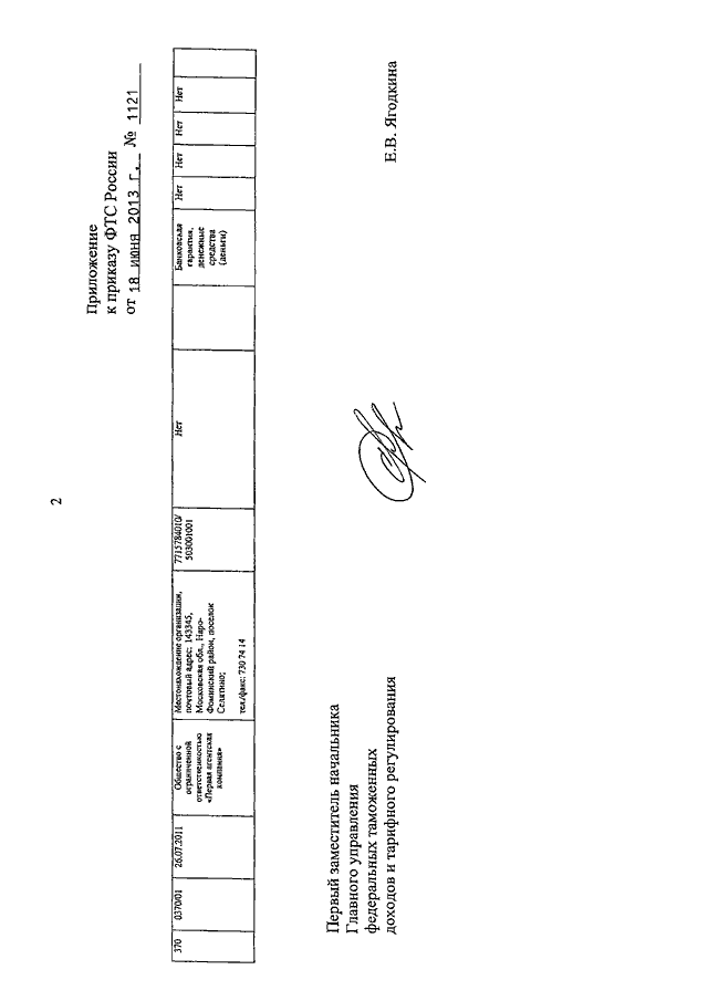 ПРИКАЗ ФТС РФ от 18.06.2013 N 1121