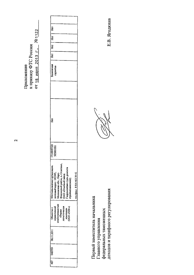 ПРИКАЗ ФТС РФ от 18.06.2013 N 1122