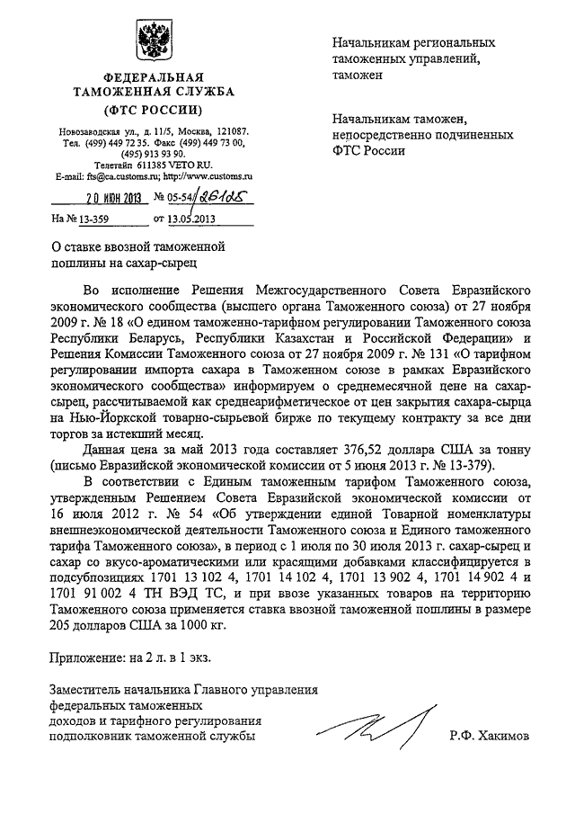 ПИСЬМО ФТС РФ от 20.06.2013 N 05-54/26125