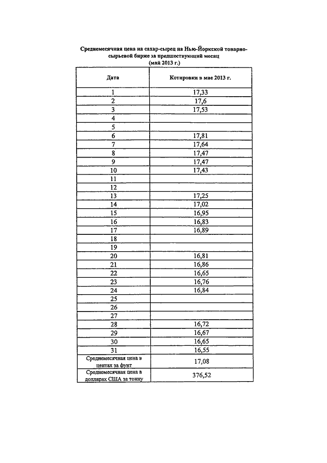(вместе с ПИСЬМОМ Евразийской экономической комиссии от 05.06.2013 N 13-379 "О МОНИТОРИНГЕ ЦЕН НА САХАР - СЫРЕЦ")