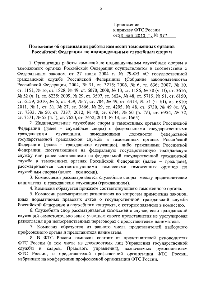 ПРИКАЗ ФТС РФ от 23.05.2013 N 977
