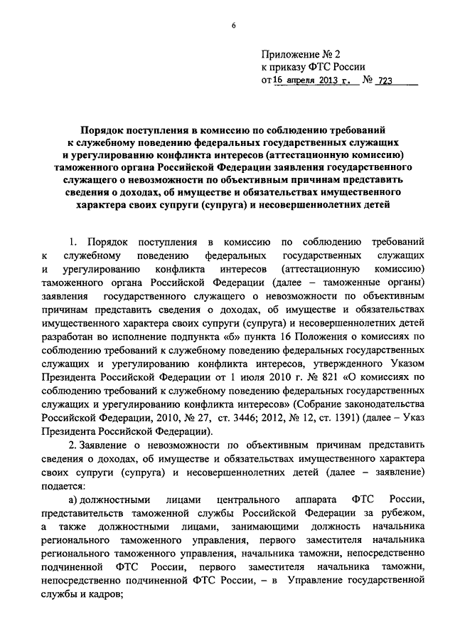 ПРИКАЗ ФТС РФ от 16.04.2013 N 723