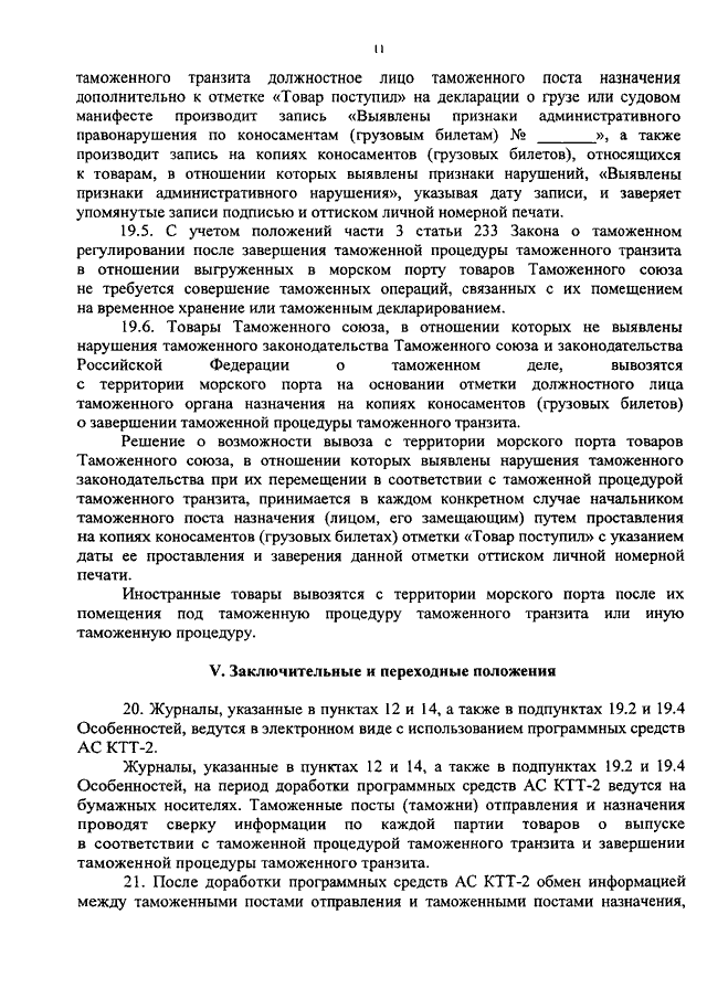 "ОБ УСТАНОВЛЕНИИ ОСОБЕННОСТЕЙ ТАМОЖЕННОГО ТРАНЗИТА В ОТНОШЕНИИ ТОВАРОВ, ПЕРЕМЕЩАЕМЫХ МОРСКИМ ТРАНСПОРТОМ"