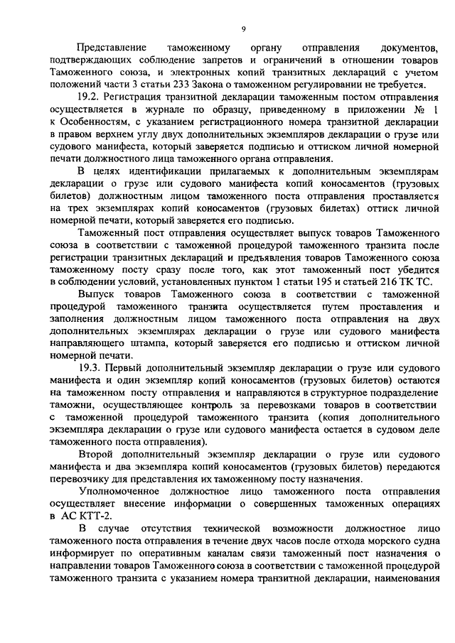 "ОБ УСТАНОВЛЕНИИ ОСОБЕННОСТЕЙ ТАМОЖЕННОГО ТРАНЗИТА В ОТНОШЕНИИ ТОВАРОВ, ПЕРЕМЕЩАЕМЫХ МОРСКИМ ТРАНСПОРТОМ"