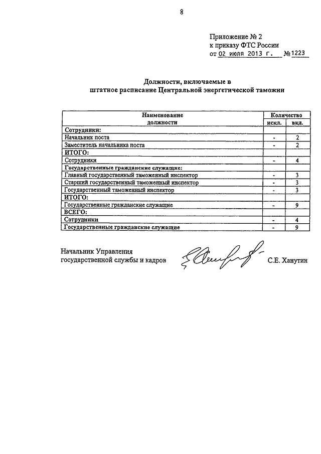 ПРИКАЗ ФТС РФ от 02.07.2013 N 1223