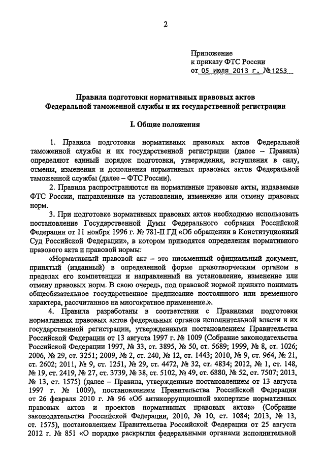 ПРИКАЗ ФТС РФ от 05.07.2013 N 1253
