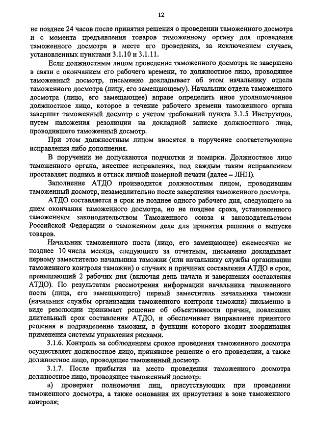 "ОБ УТВЕРЖДЕНИИ ИНСТРУКЦИИ О ДЕЙСТВИЯХ ДОЛЖНОСТНЫХ ЛИЦ ТАМОЖЕННЫХ ОРГАНОВ ПРИ ОРГАНИЗАЦИИ И ПРОВЕДЕНИИ ТАМОЖЕННОГО ДОСМОТРА (ОСМОТРА) ДО ВЫПУСКА ТОВАРОВ"