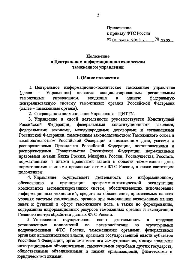 ПРИКАЗ ФТС РФ от 01.07.2013 N 1205