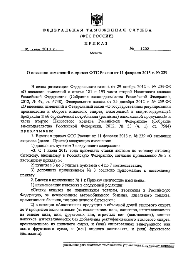 ПРИКАЗ ФТС РФ от 01.07.2013 N 1202