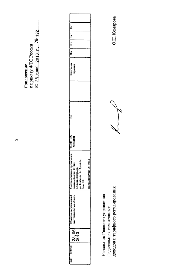ПРИКАЗ ФТС РФ от 28.06.2013 N 1192