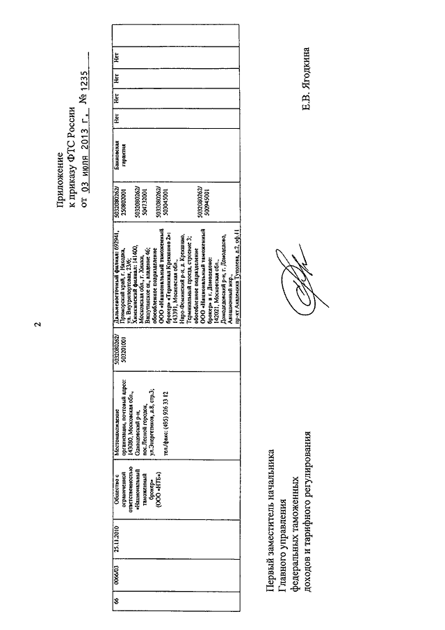 "О ВНЕСЕНИИ ИЗМЕНЕНИЙ В РЕЕСТР ТАМОЖЕННЫХ ПРЕДСТАВИТЕЛЕЙ В ОТНОШЕНИИ ОБЩЕСТВА С ОГРАНИЧЕННОЙ ОТВЕТСТВЕННОСТЬЮ "НАЦИОНАЛЬНЫЙ ТАМОЖЕННЫЙ БРОКЕР" (ООО "НТБ")"