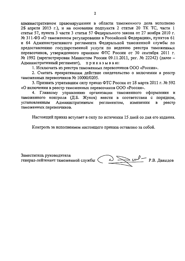 "ОБ ИСКЛЮЧЕНИИ ИЗ РЕЕСТРА ТАМОЖЕННЫХ ПЕРЕВОЗЧИКОВ ООО "РОССИЯ"