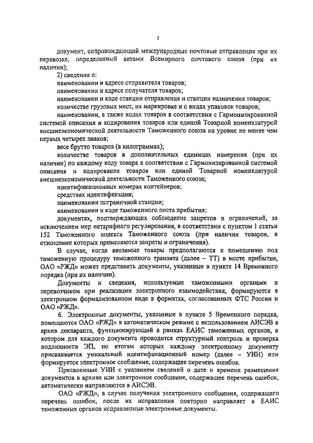 "ОБ УТВЕРЖДЕНИИ ВРЕМЕННОГО ПОРЯДКА ОБМЕНА ЭЛЕКТРОННЫМИ ДОКУМЕНТАМИ И СВЕДЕНИЯМИ В ЭЛЕКТРОННОМ ВИДЕ ПРИ СОВЕРШЕНИИ ТАМОЖЕННЫХ ОПЕРАЦИЙ И ПРОВЕДЕНИИ ТАМОЖЕННОГО КОНТРОЛЯ В ОТНОШЕНИИ ЖЕЛЕЗНОДОРОЖНЫХ ТРАНСПОРТНЫХ СРЕДСТВ И ТОВАРОВ, ПРИБЫВАЮЩИХ НА ТАМОЖЕННУЮ ТЕРРИТОРИЮ ТАМОЖЕННОГО СОЮЗА"