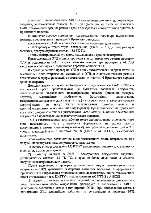"ОБ УТВЕРЖДЕНИИ ВРЕМЕННОГО ПОРЯДКА ОБМЕНА ЭЛЕКТРОННЫМИ ДОКУМЕНТАМИ И СВЕДЕНИЯМИ В ЭЛЕКТРОННОМ ВИДЕ ПРИ СОВЕРШЕНИИ ТАМОЖЕННЫХ ОПЕРАЦИЙ И ПРОВЕДЕНИИ ТАМОЖЕННОГО КОНТРОЛЯ В ОТНОШЕНИИ ЖЕЛЕЗНОДОРОЖНЫХ ТРАНСПОРТНЫХ СРЕДСТВ И ТОВАРОВ, ПРИБЫВАЮЩИХ НА ТАМОЖЕННУЮ ТЕРРИТОРИЮ ТАМОЖЕННОГО СОЮЗА"