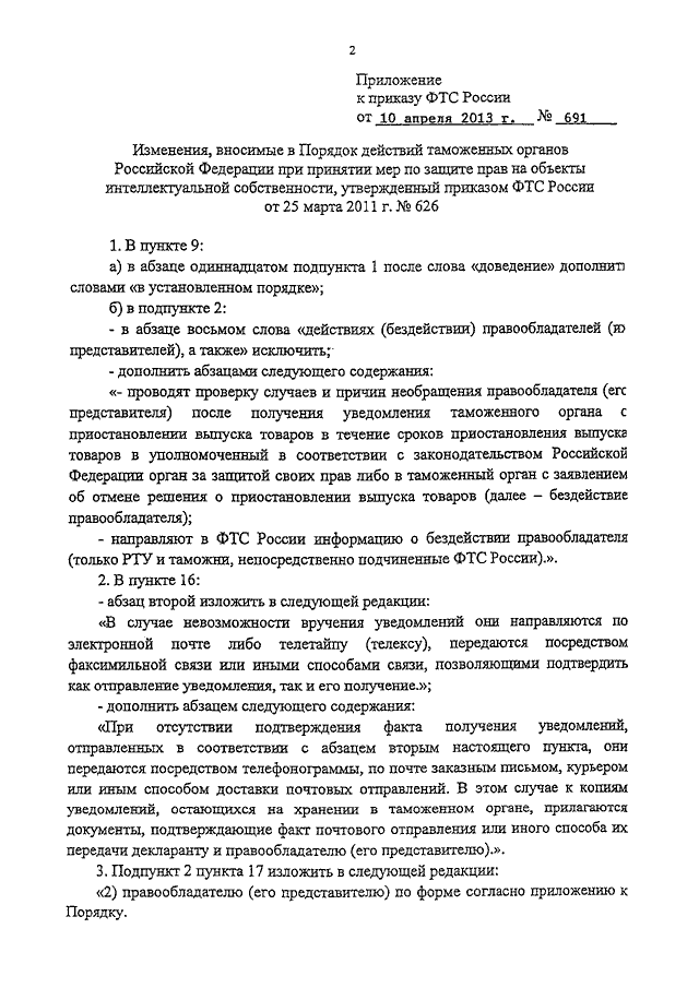 ПРИКАЗ ФТС РФ от 10.04.2013 N 691