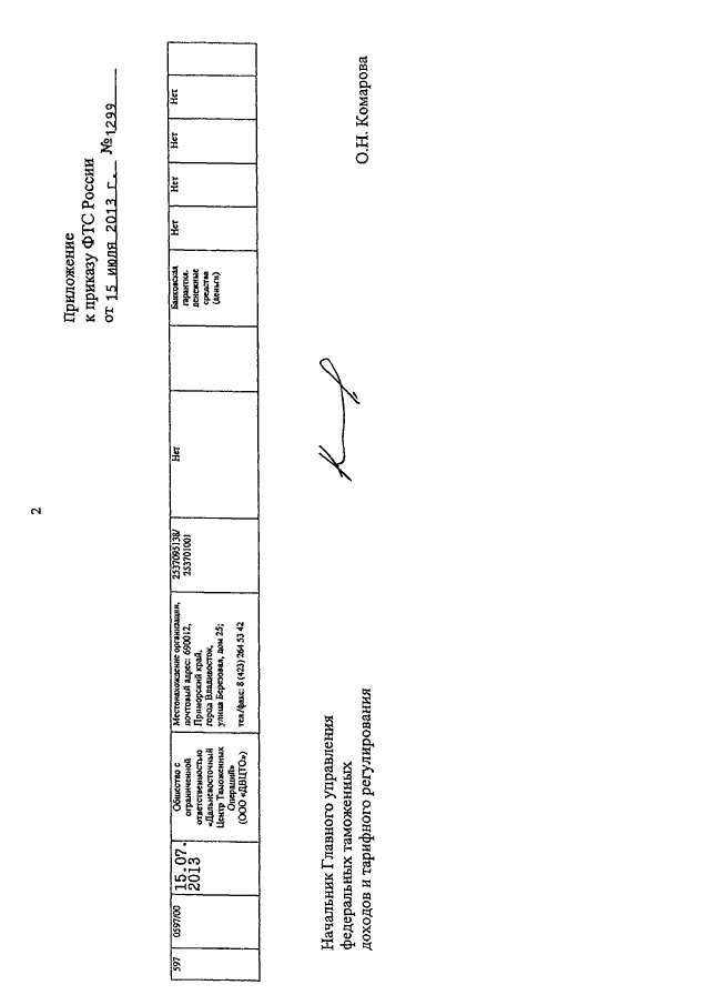ПРИКАЗ ФТС РФ от 15.07.2013 N 1299