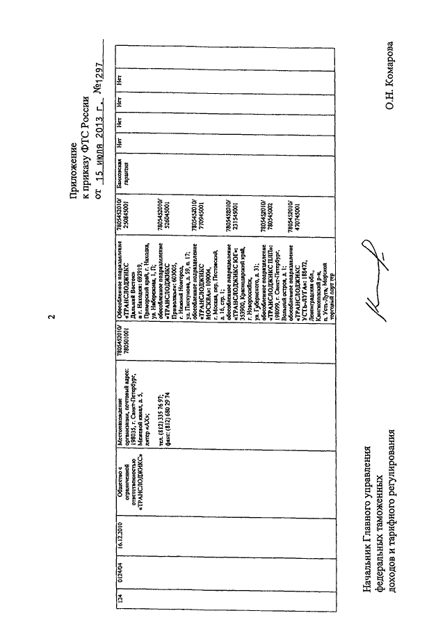 "О ВНЕСЕНИИ ИЗМЕНЕНИЙ В РЕЕСТР ТАМОЖЕННЫХ ПРЕДСТАВИТЕЛЕЙ В ОТНОШЕНИИ ОБЩЕСТВА С ОГРАНИЧЕННОЙ ОТВЕТСТВЕННОСТЬЮ "ТРАНСЛОДЖИКС"