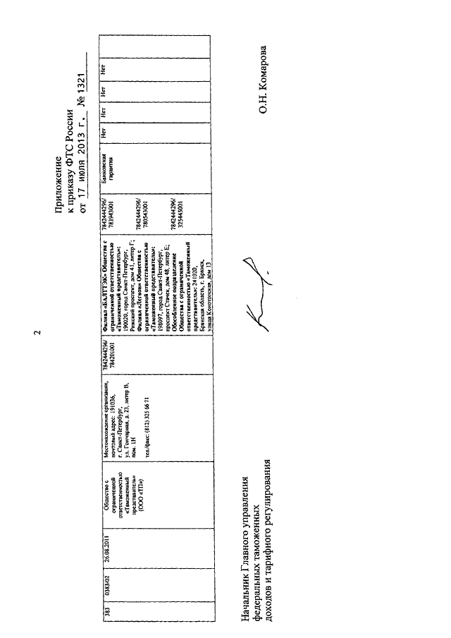 ПРИКАЗ ФТС РФ от 17.07.2013 N 1321