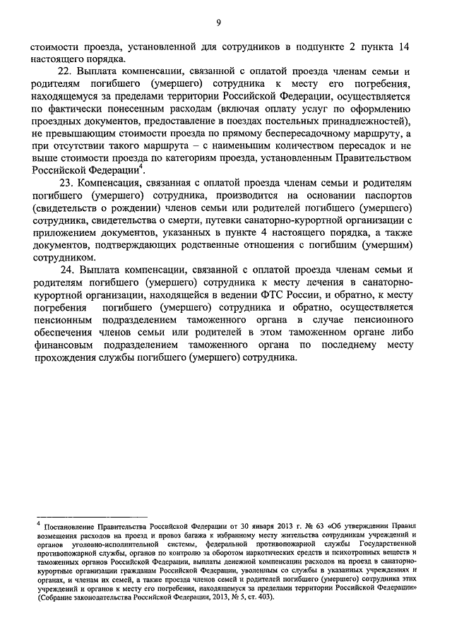 "ОБ УТВЕРЖДЕНИИ ПОРЯДКА ОПЛАТЫ ПРОЕЗДА СОТРУДНИКАМ ТАМОЖЕННЫХ ОРГАНОВ РОССИЙСКОЙ ФЕДЕРАЦИИ И ЧЛЕНАМ ИХ СЕМЕЙ, А ТАКЖЕ ВЫПЛАТЫ ДЕНЕЖНОЙ КОМПЕНСАЦИИ РАСХОДОВ, СВЯЗАННЫХ С ОПЛАТОЙ ПРОЕЗДА ЧЛЕНАМ СЕМЕЙ И РОДИТЕЛЯМ ПОГИБШЕГО (УМЕРШЕГО) СОТРУДНИКА ТАМОЖЕННОГО ОРГАНА РОССИЙСКОЙ ФЕДЕРАЦИИ"