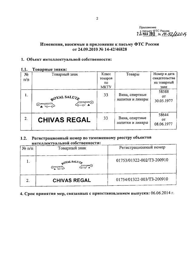 ПИСЬМО ФТС РФ от 27.05.2013 N 14-42/22014