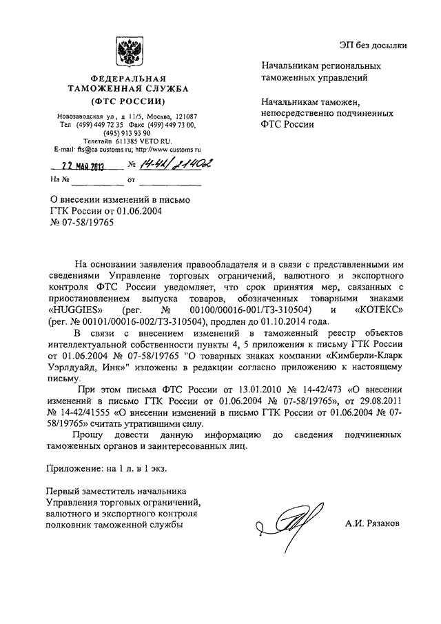 ПИСЬМО ФТС РФ от 22.05.2013 N 14-42/21402