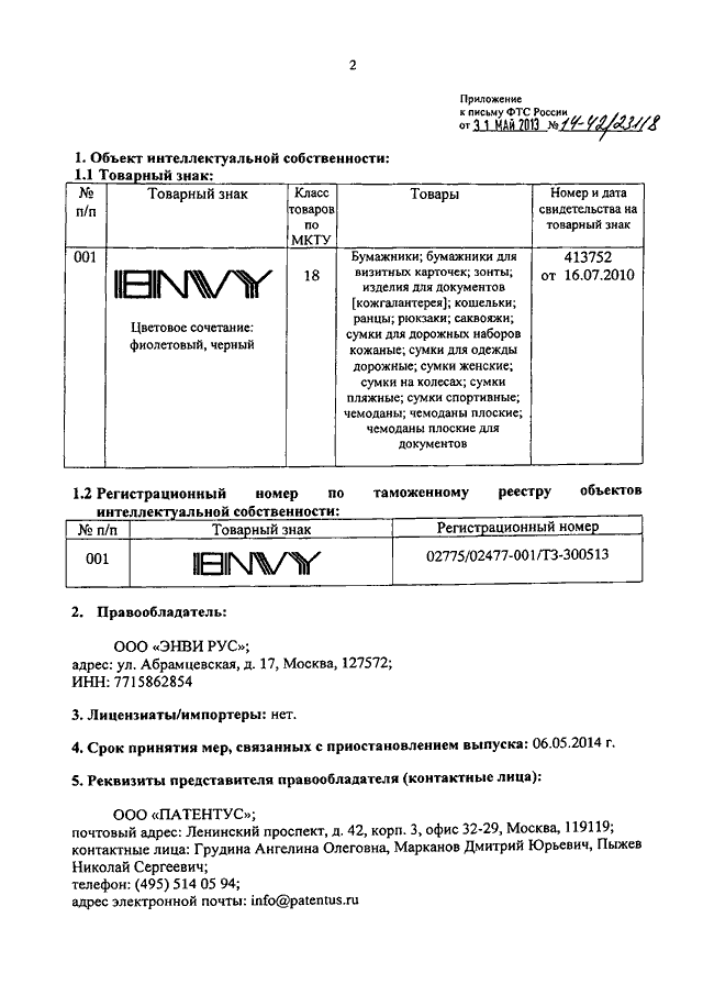 "О ТОВАРНОМ ЗНАКЕ "ENVY"