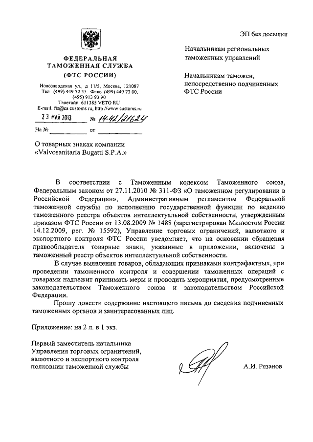ПИСЬМО ФТС РФ от 23.05.2013 N 14-42/21624