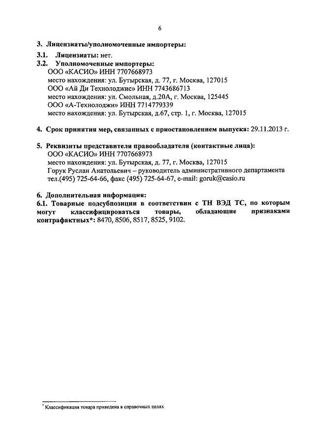 "О ТОВАРНЫХ ЗНАКАХ КОМПАНИИ "CASIO KEISANKI KABUSHIKI KAISHA"