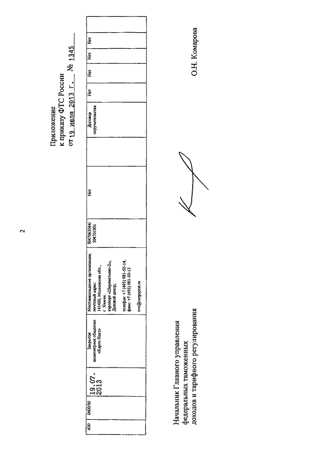 ПРИКАЗ ФТС РФ от 19.07.2013 N 1345