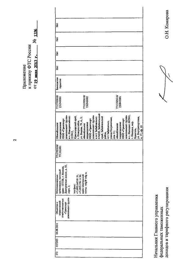 ПРИКАЗ ФТС РФ от 19.07.2013 N 1336