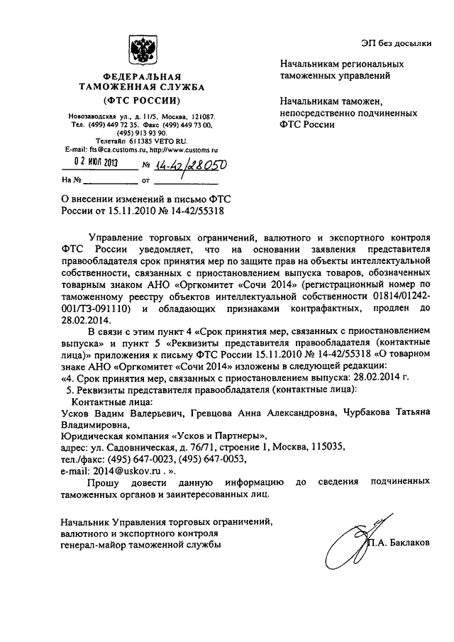 ПИСЬМО ФТС РФ от 02.07.2013 N 14-42/28050