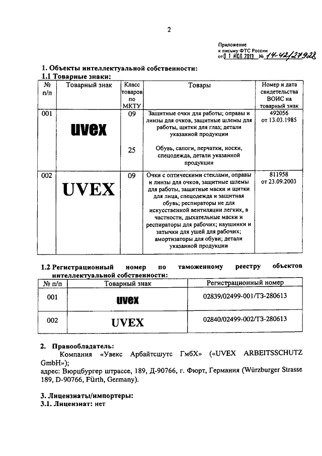 "О ТОВАРНЫХ ЗНАКАХ КОМПАНИИ "UVEX ARBEITSSCHUTZ GMBH"