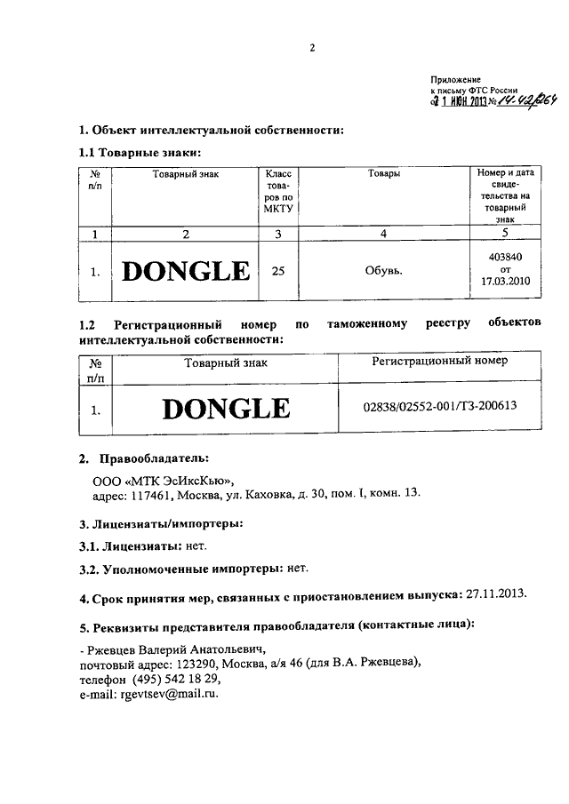 "О ТОВАРНОМ ЗНАКЕ "DONGLE"