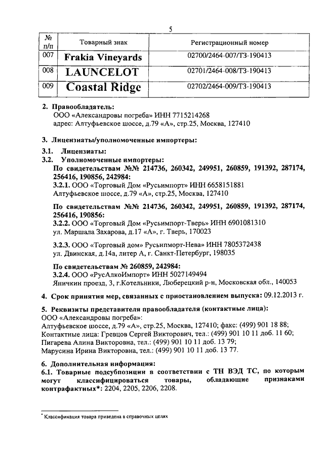 "О ТОВАРНЫХ ЗНАКАХ ООО "АЛЕКСАНДРОВЫ ПОГРЕБА"