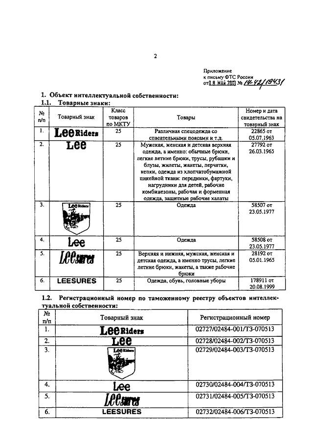 "О ТОВАРНЫХ ЗНАКАХ КОМПАНИИ "THE H.D. LEE COMPANY, INC."